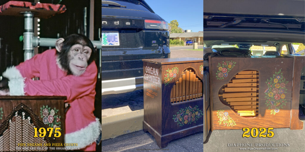 At the end of 2025, the couple moved out of the Phoenix area, and gave the street organ to a local organist, who in turn passed it along to the documentary project. The instrument made the drive (along with a car-load of camera gear) back to Portland, and is awaiting restoration.